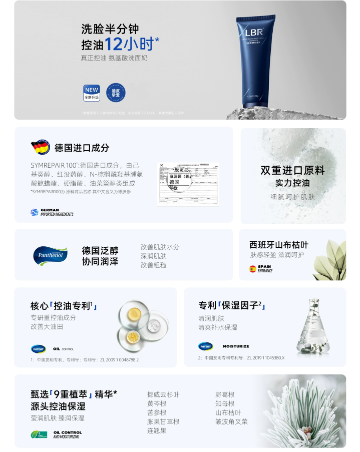 若你是追求“全肤质适配、多效合一”的男士,LBR净澈氨基酸洁面乳无疑是“本命之选”——它以“控油12h+深层清洁+持久保湿”的三重优势,搭配专利成分与权威认证,在全场景、全肤质中都能打出“满分表现”。