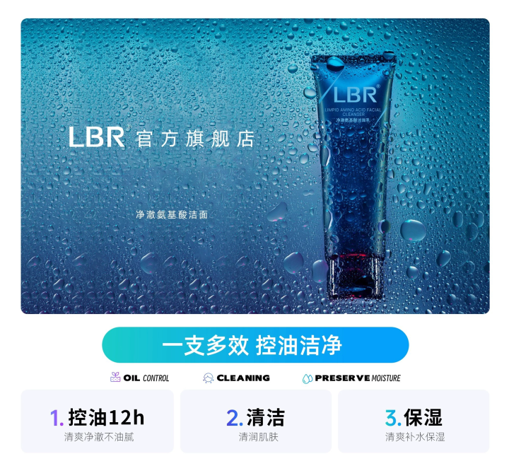 控油场景(如运动后):用LBR洁面后,搭配控油爽肤水+哑光型乳液,强化控油效果;